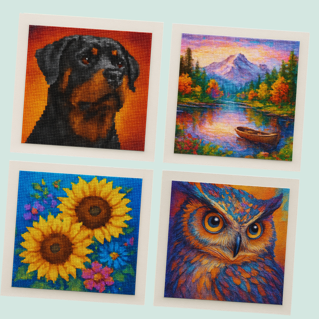 Deze diamond painting set is perfect voor liefhebbers van natuur, sterrenhemels en symbolische kunst. Of je ze nu samen als collectie ophangt of afzonderlijk laat schitteren, elk kunstwerk vertelt zijn eigen verhaal en zorgt voor een ontspannen en creatieve hobby-ervaring.