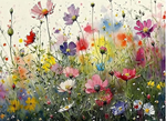 Breng de schoonheid van een zomerse bloemenweide tot leven met deze sprankelende Diamond Painting. Dit kleurrijke ontwerp toont een speelse mix van wilde bloemen in roze, paars, geel, rood en wit, subtiel gecombineerd met een zachte aquarelachtergrond vol verfspetters. De fijne details en levendige tinten zorgen voor een schilderachtig en bijna magisch effect.