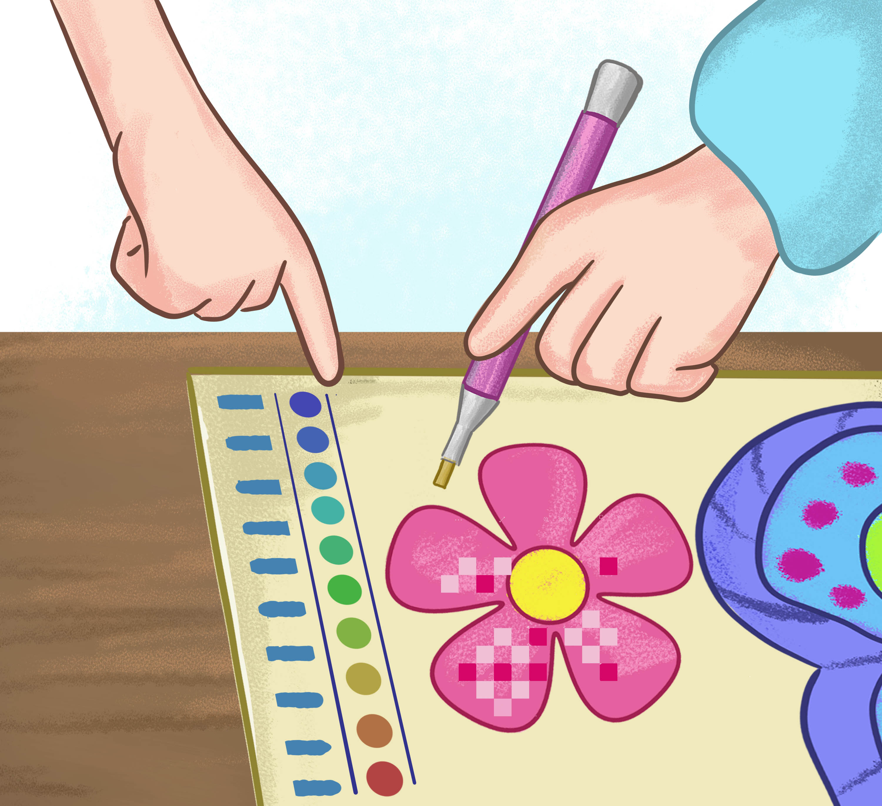 Breng de wax aan op de punt van de Diamond Painting Pen en pak een diamant.